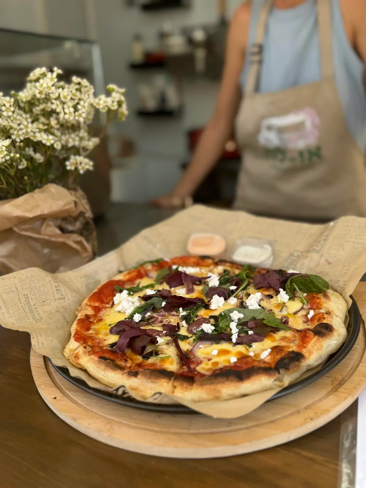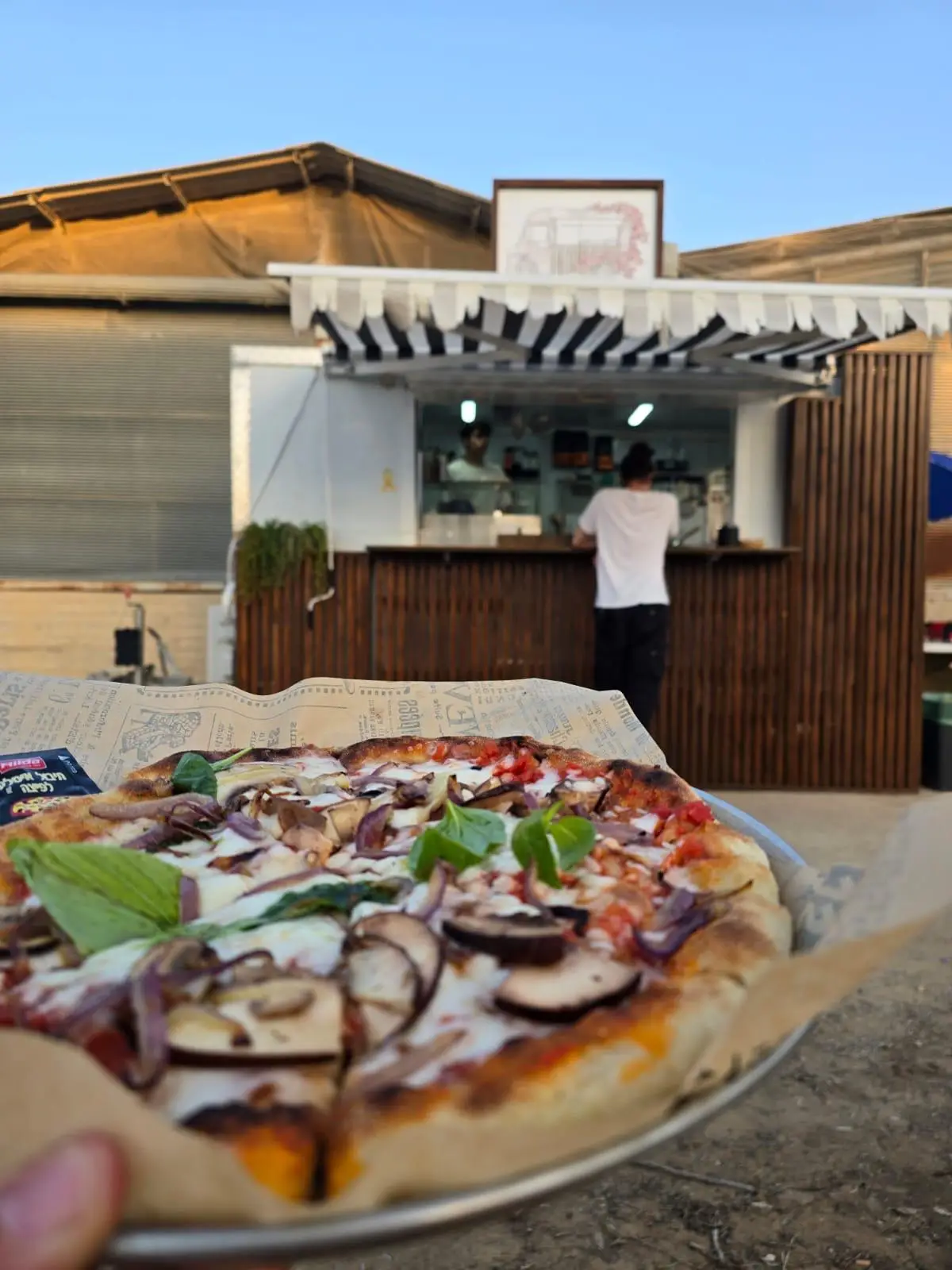 העגלה מציעה תפריט מגוון הכולל בורקס טורקי חם, פיצות טריות שנאפות במקום, סלטים רעננים, כריכים מיוחדים ומגוון מאפים מפנקים.