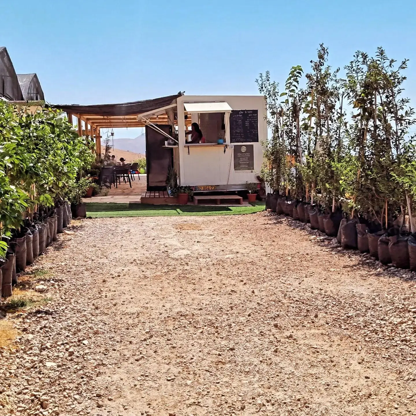 לעגלת הקפה תעודת כשרות של רבנות בקעת הירדן.