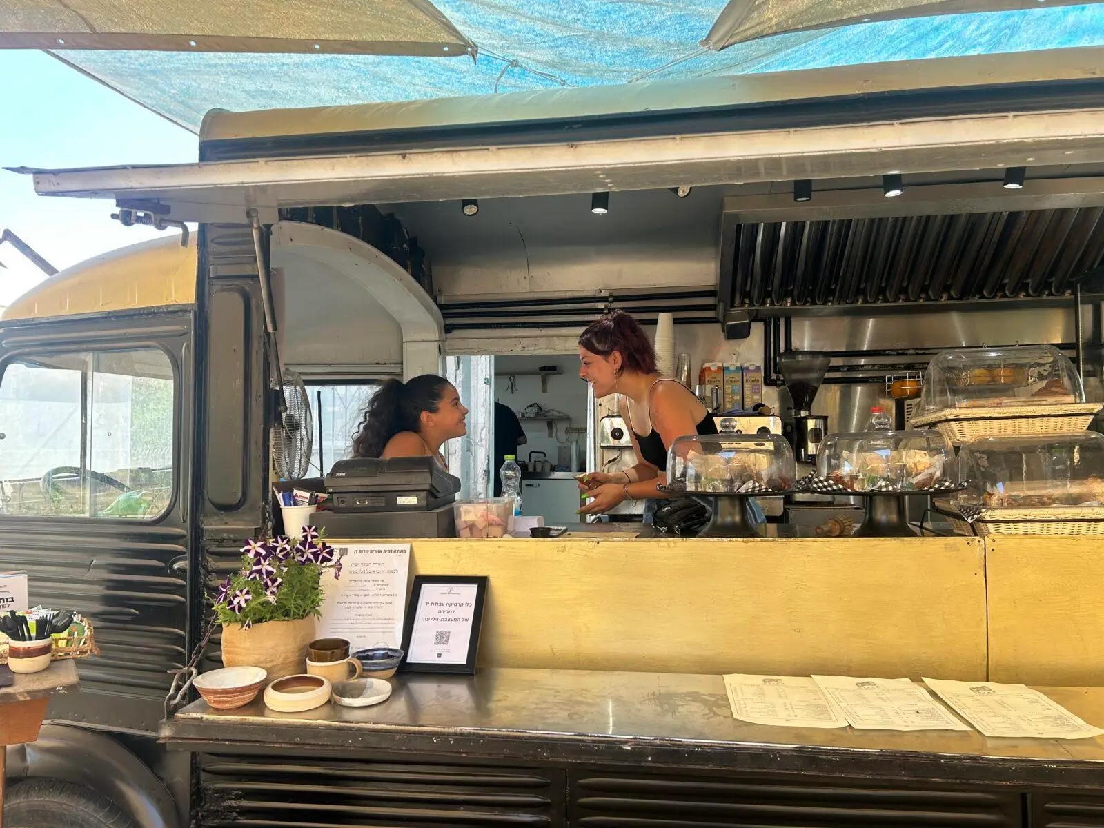סיפור העגלה: המקום נולד מתוך אהבה לאירוח – משפחת עזר פתחה את העגלה בתוך בוסתן קסום במושב גנות כדי לחלוק את השקט, האוכל והקפה עם כולם. אווירה משפחתית שמרגישים מהרגע הראשון, ונוף של עצים שמרגיע את הנשמה.