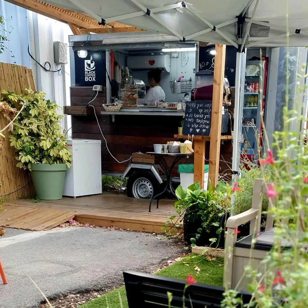 עגלת קפה "The black coffee box" הינה עגלת קפה בתוך משתלת יגור, קיבוץ יגור!