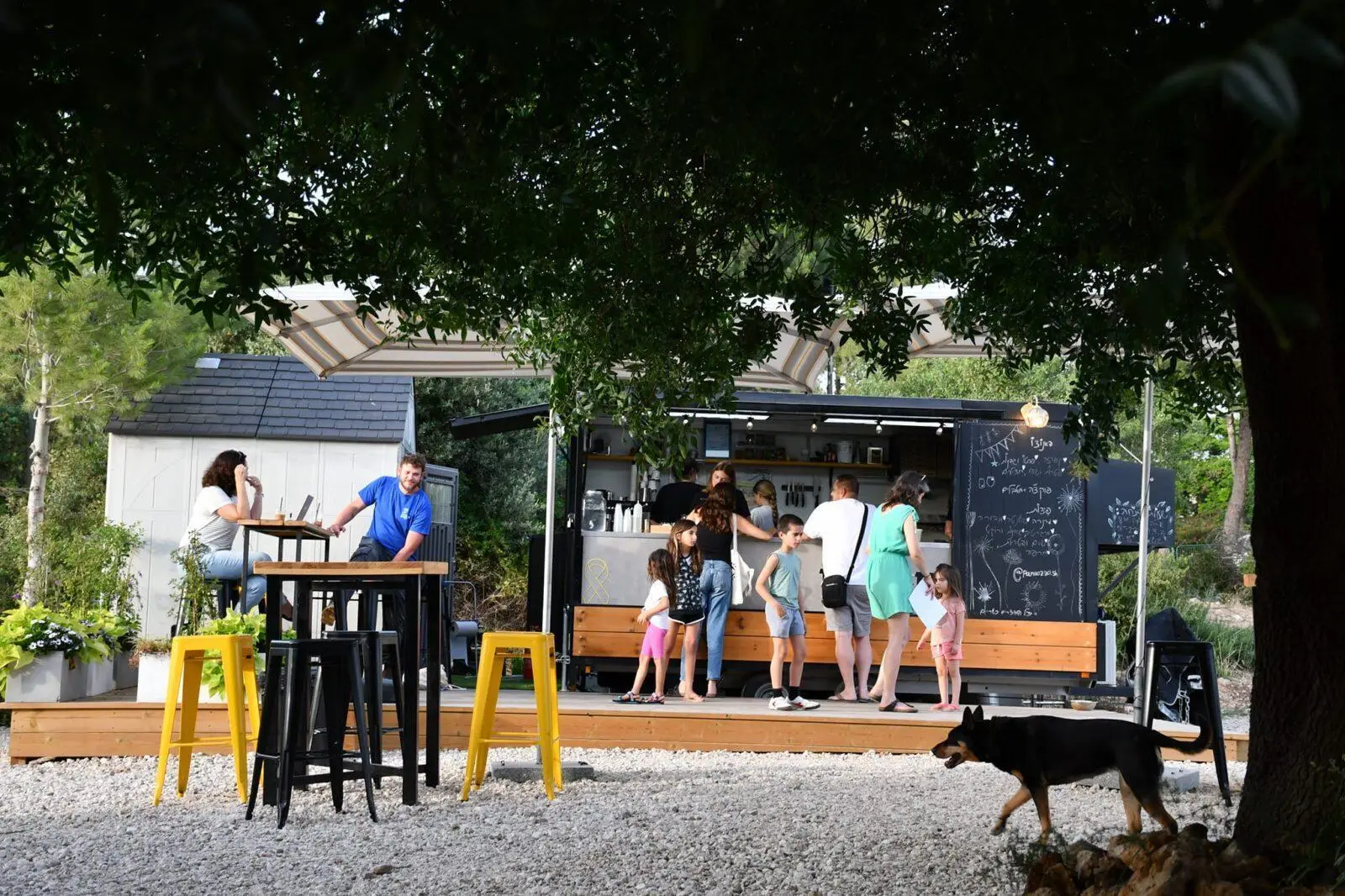 אווירה פסטורלית: העגלה ממוקמת בנקודה שקטה וירוקה, עם פינות ישיבה נוחות שמתאימות לבילוי משפחתי, זוגי או עם חברים.