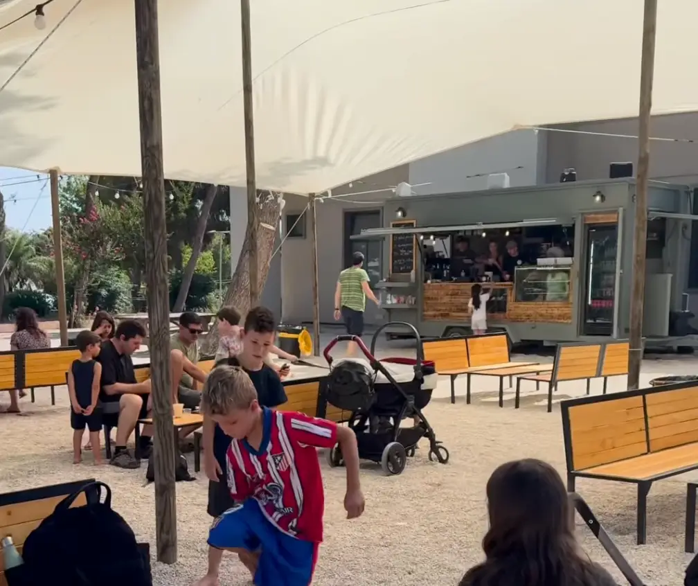 מקום נפלא, מוצל ואווירה מהנה, גן שעשועים גדול מאד בצמוד, מרחב בטוח לילדים, ווייב נהדר לחברים . ממש מומלץ