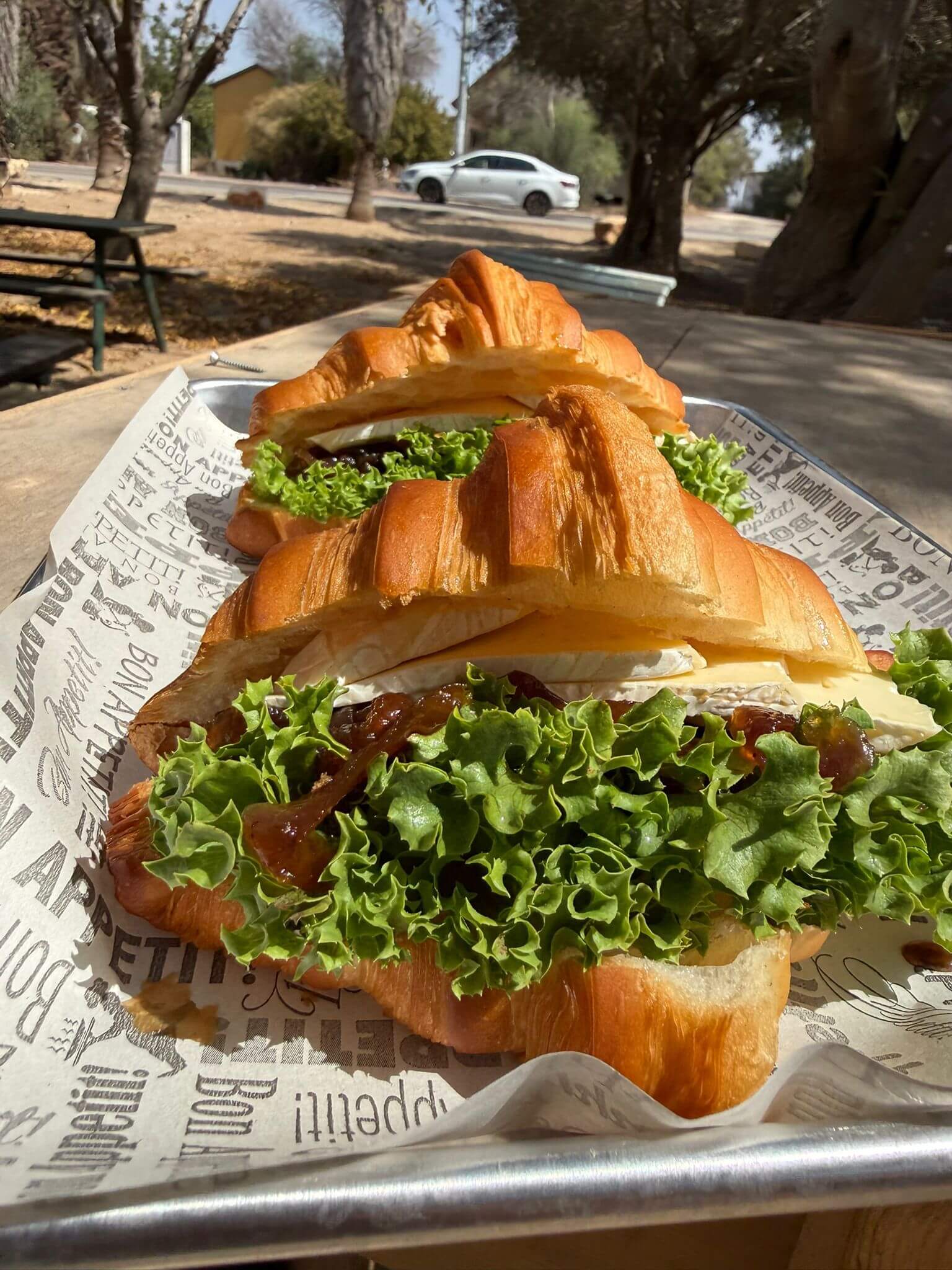 כריכים ( כריך קוראסון עם גבינה וריבת בצל, כריך אבוקדו)