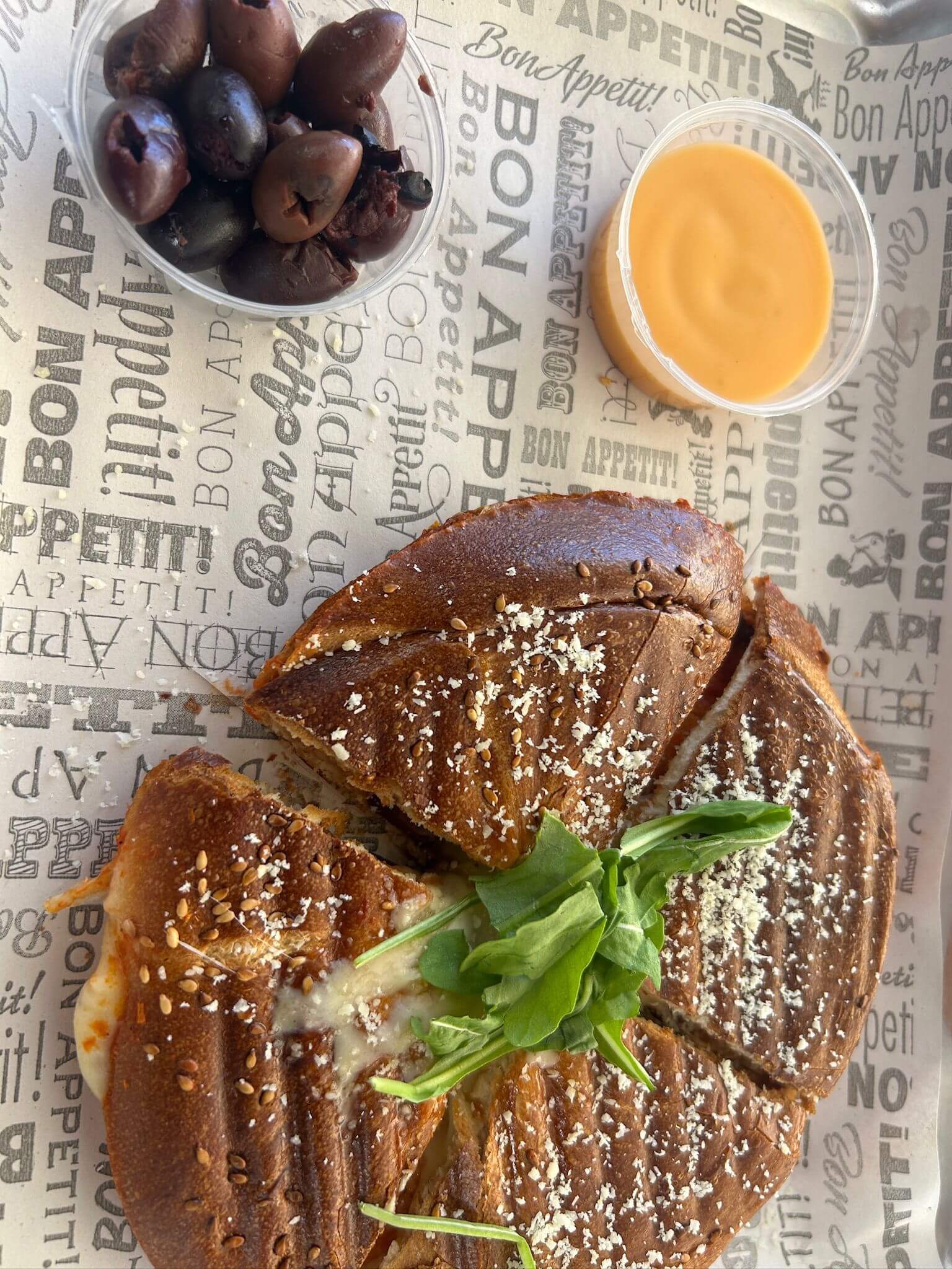 טוסטים ( טוסט גבינה , טוסט גבינה עם זיתי קלמטה ורוטב עגבניות )