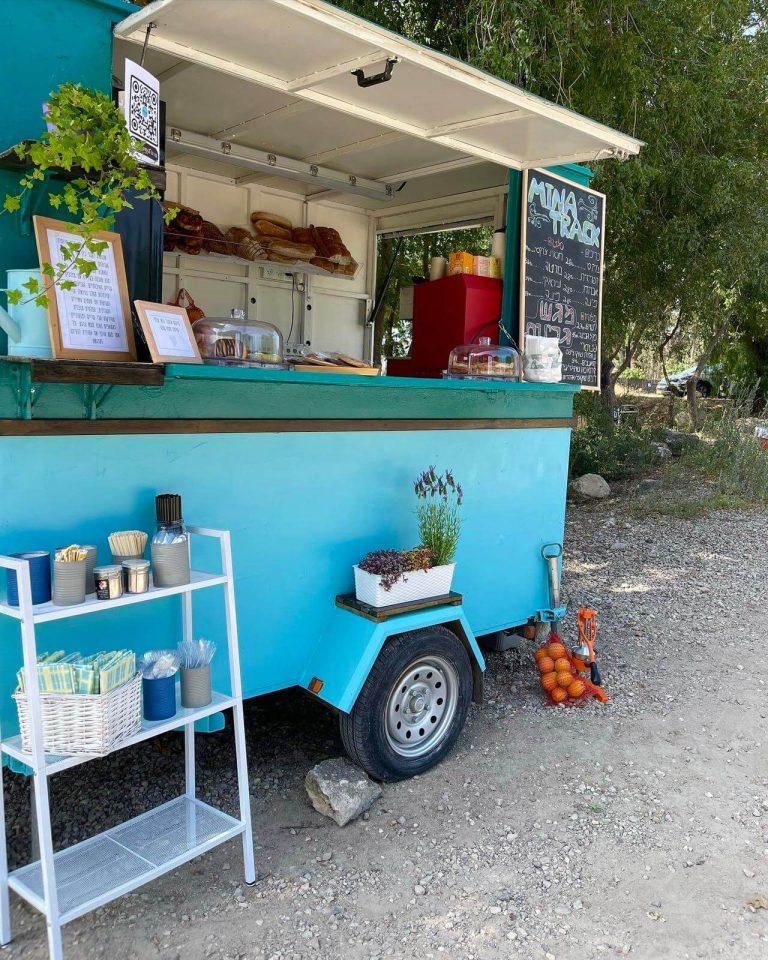 בעגלה מגישים כריכים מעולים בעבודת יד, שמכינים במקום, קרואסון פינוקים מדהים, שקשוקה בתוך לחם, קישים מצויינים, סלטים, חליטות תה משגעות עם פירות טריים.