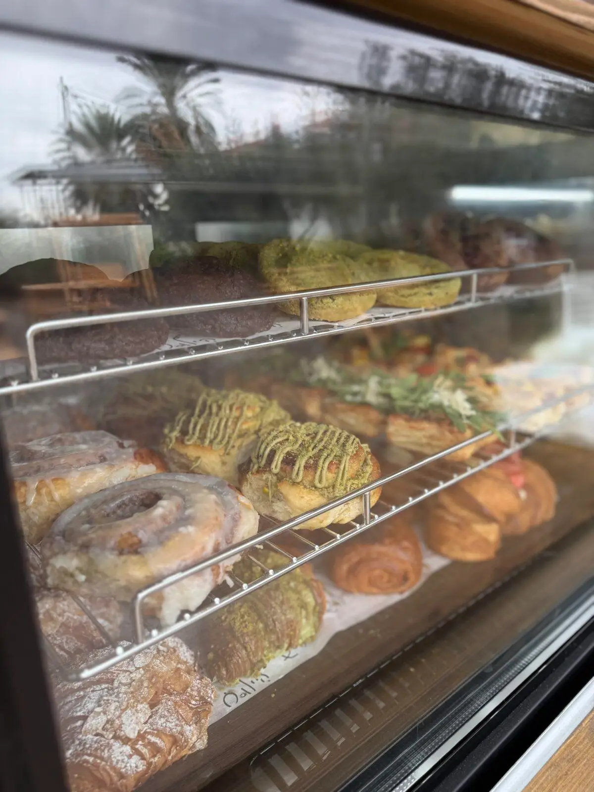 האוכל: מבחר מאפים מלוחים ומתוקים, כריכים טריים, וקינוחים מגוונים.