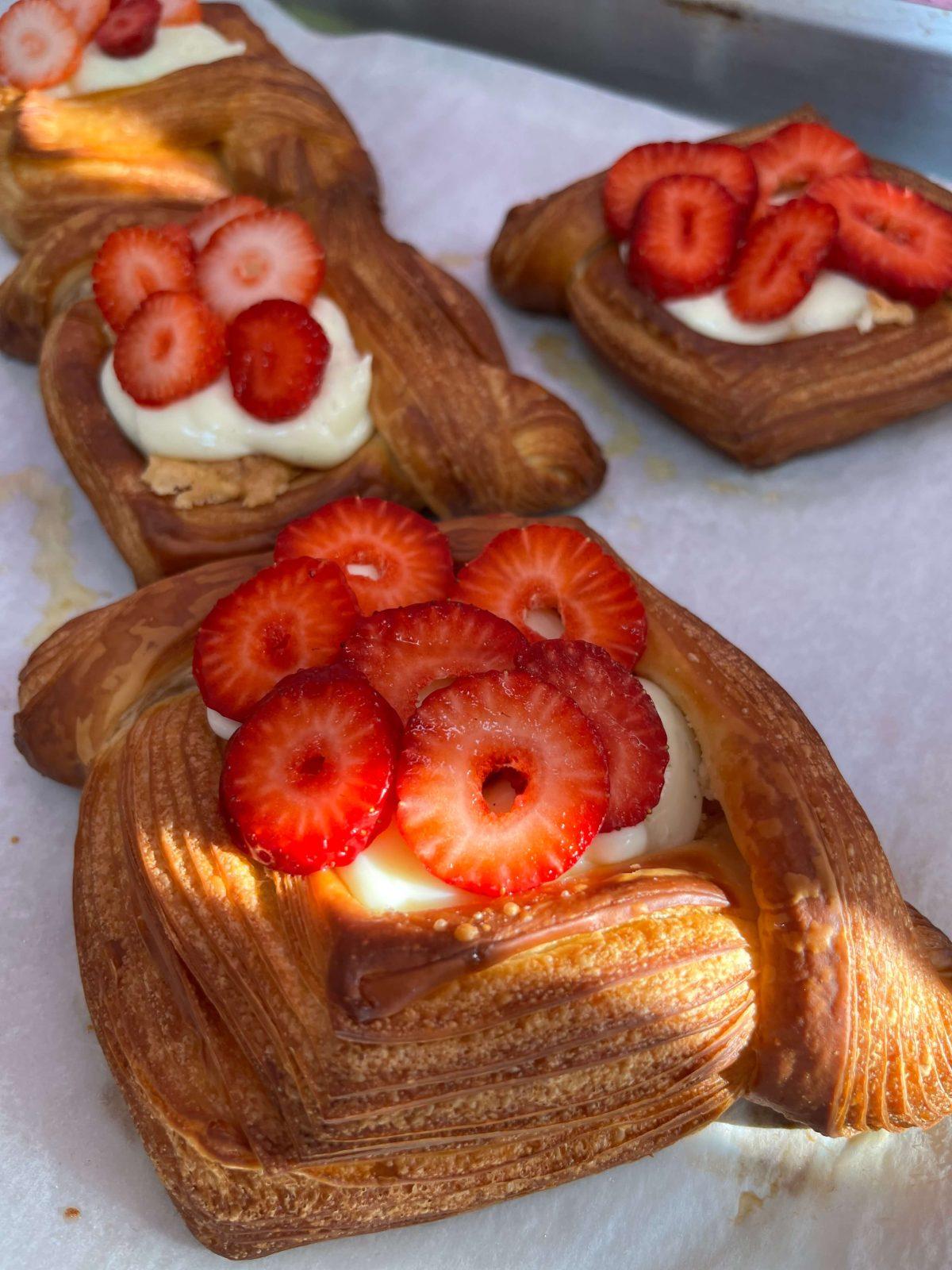 הזמנו ברוסקטה, מאפה תותים וניל, מאפה קינמון וקרואסון שקדים. הכל היה טעים מאוד בניחוח וטעם אירופאים לגמרי