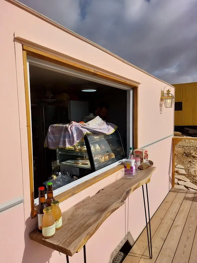 מקום מדהים בלב מדבר, ליושב שם תחושה של מקום באמצע שום מקום, האויר נקי ויש שקט. הצוות נותן שרות מעולה. המאפים ברמה עולמית.